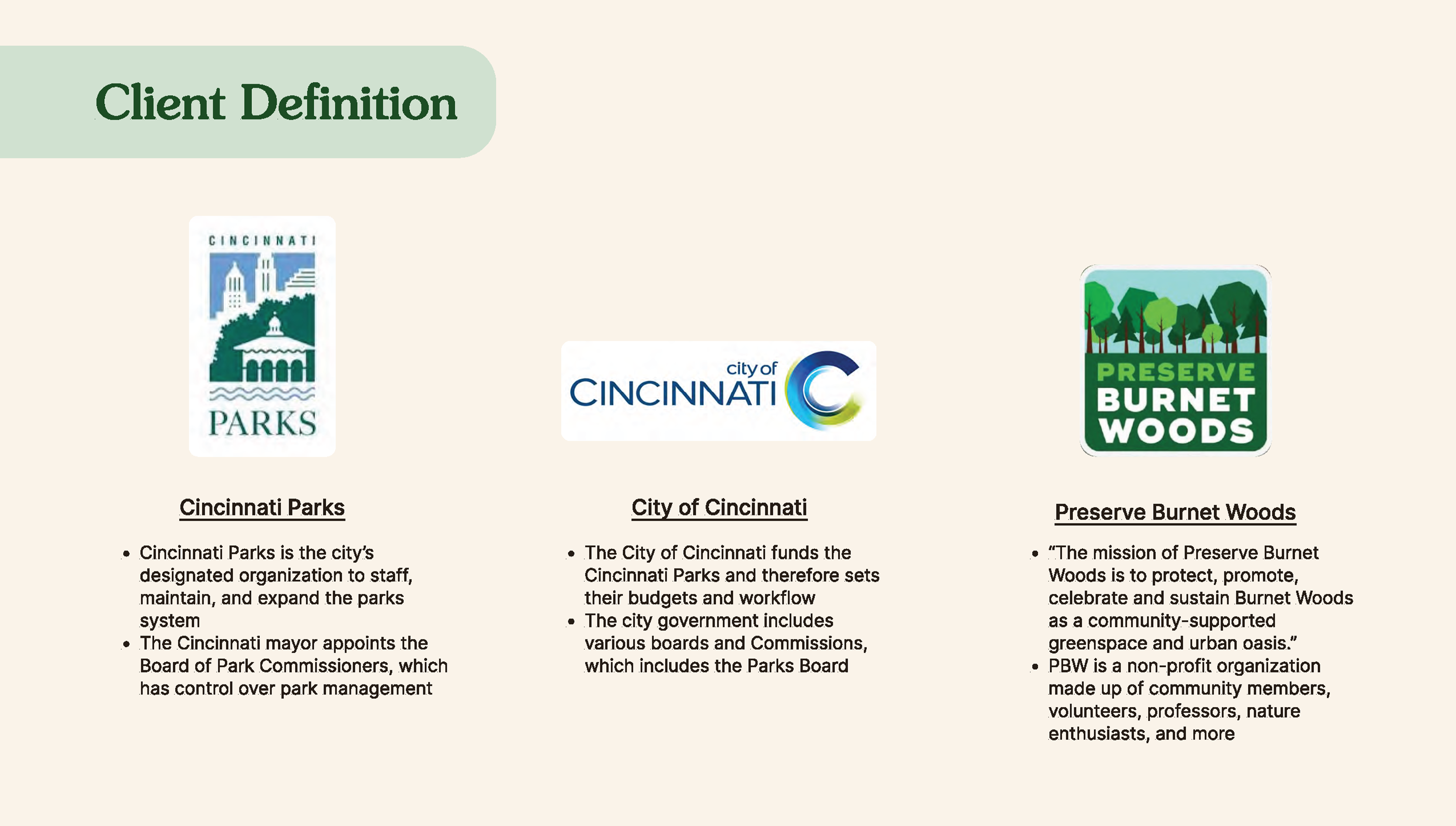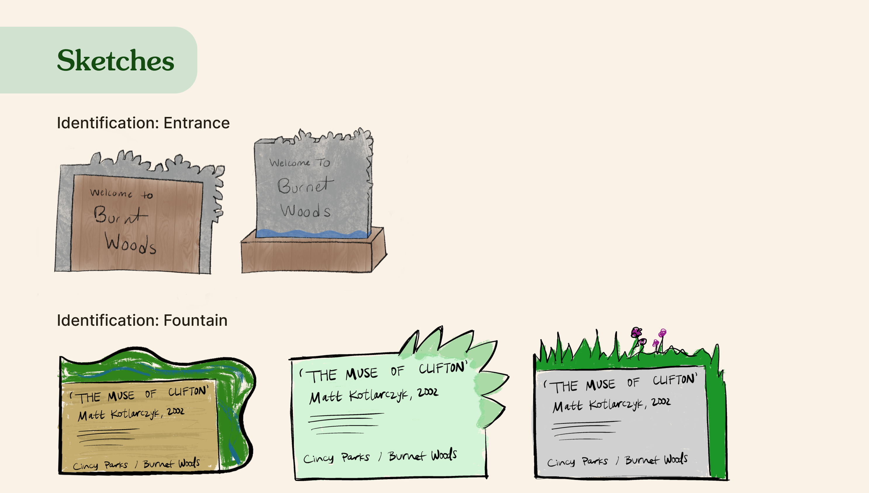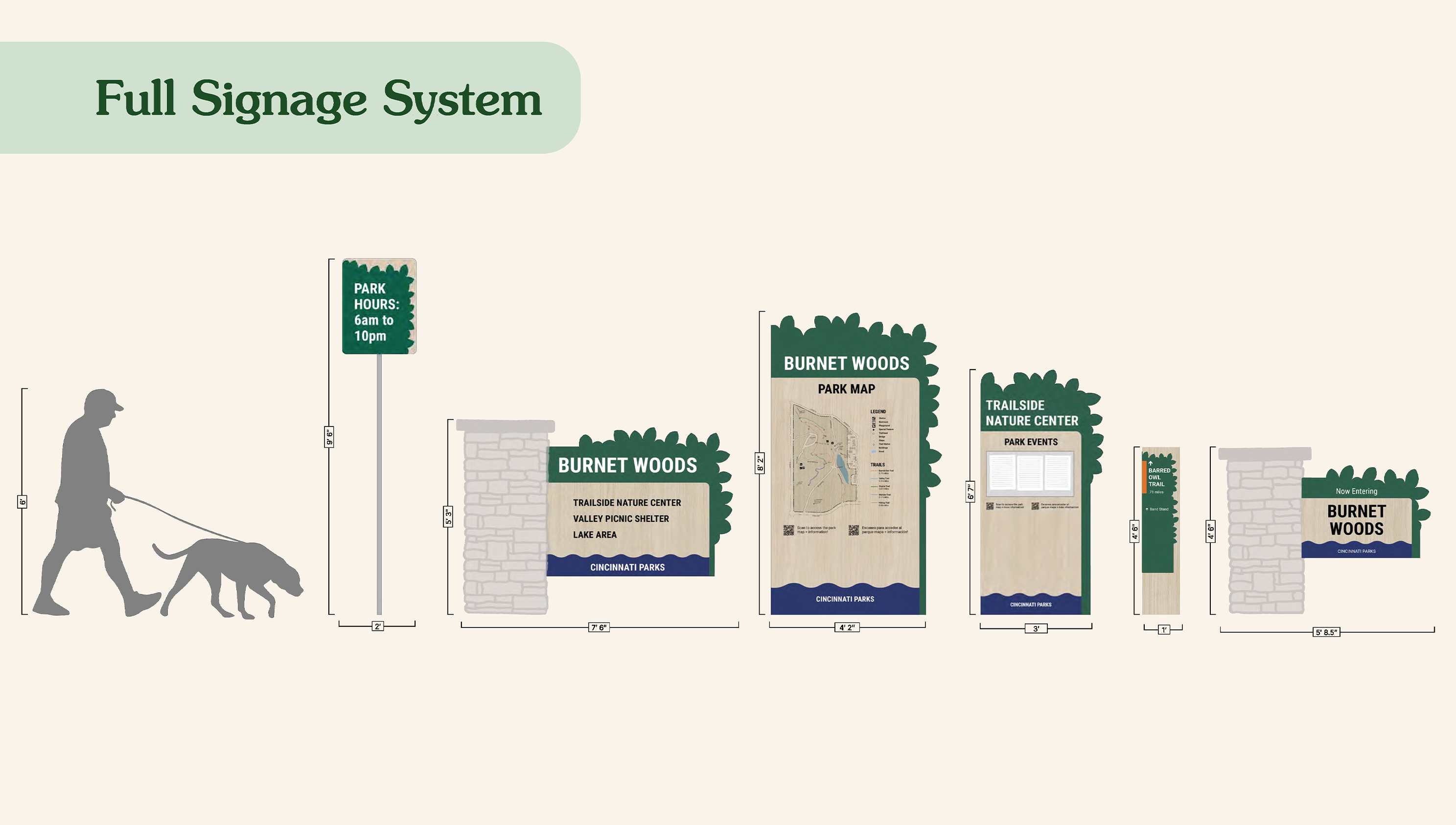 Signage revamp for local park Burnet Woods designed in collaboration with Alexa Olic for a studio class.